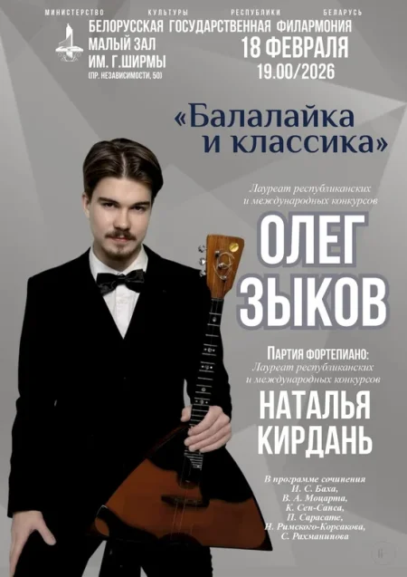 Лауреат республиканских и международных конкурсов Олег Зыков. Партия фортепиано – Наталья Кирдань.